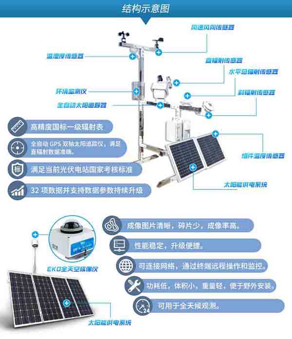 太陽(yáng)能光伏監(jiān)控系統(tǒng)就是將光伏電站的逆變器、匯流箱、輻照儀、氣象儀、電表、天空成像儀等設(shè)備通過(guò)數(shù)據(jù)線連接起來(lái),用光伏電站數(shù)據(jù)采集器進(jìn)行這些設(shè)備的數(shù)據(jù)采集,并通過(guò)GPRS、以太網(wǎng)、WIFI等方式上傳到網(wǎng)絡(luò)服務(wù)器或本地電腦,使用戶可以在互聯(lián)網(wǎng)或本地電腦上查看相關(guān)數(shù)據(jù),方便電站管理人員和用戶對(duì)光伏電站的運(yùn)行數(shù)據(jù)查看和管理。